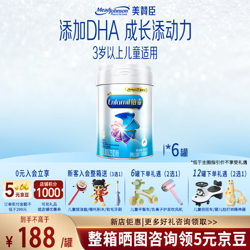 美赞臣铂睿奶粉4段3-6岁 学生儿童成长奶粉 3岁以上 荷兰进口 新国标 4段850g*1罐【会员专享】