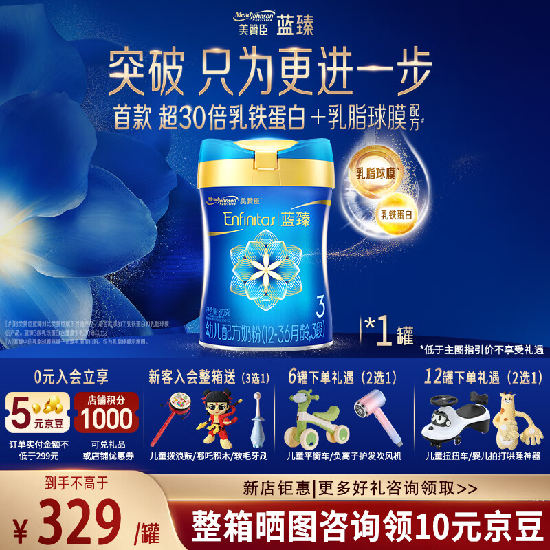 百亿补贴:美赞臣官方蓝臻3段乳铁蛋白婴幼儿配方奶粉820g多规格可选 新国标