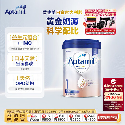 爱他美(Aptamil)白金婴幼儿配方营养奶粉1段800克意大利版(0-6个月)