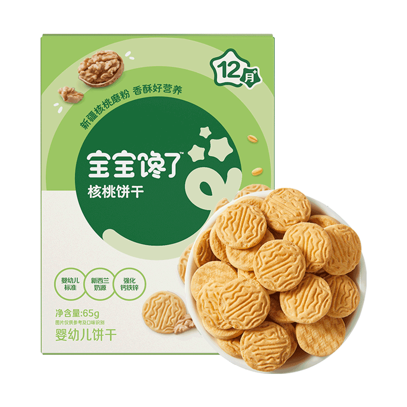 宝宝馋了婴幼儿核桃饼干宝宝儿童零食无添加食盐饼干1-2岁强化钙营养65g