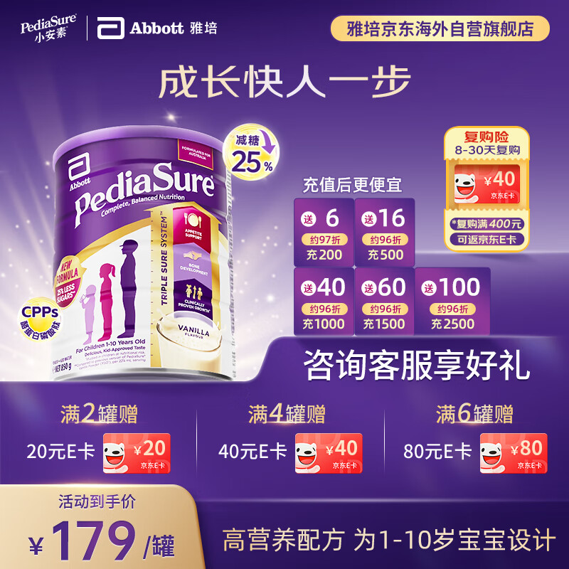雅培澳洲版小安素婴幼儿童成长营养奶粉低糖1-10岁香草味850g