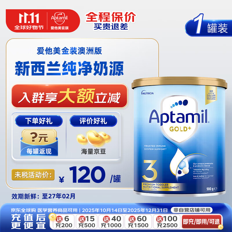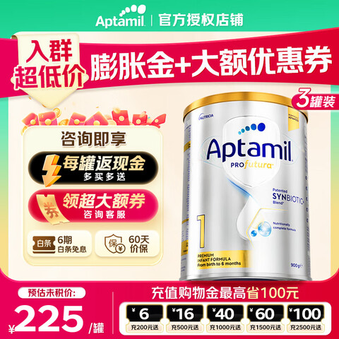爱他美(Aptamil)澳洲白金版含DHA叶黄素营养新西兰进口婴幼儿配方牛奶粉官方授权【晒单每罐返】1段3罐效期至27.4