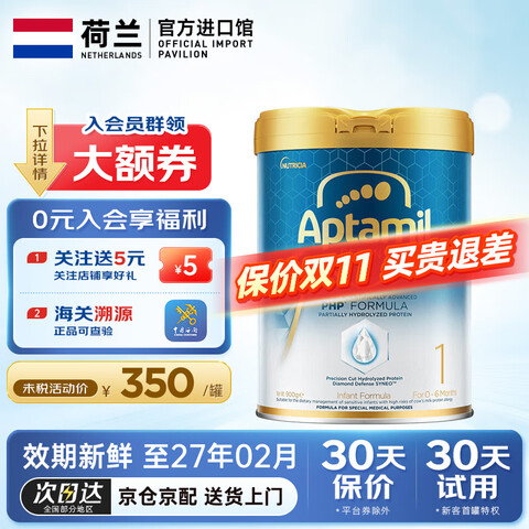 爱他美(Aptamil)澳洲白金版含DHA叶黄素营养新西兰进口婴幼儿配方牛奶粉官方授权【社群价更低】1段6罐效期至27.4