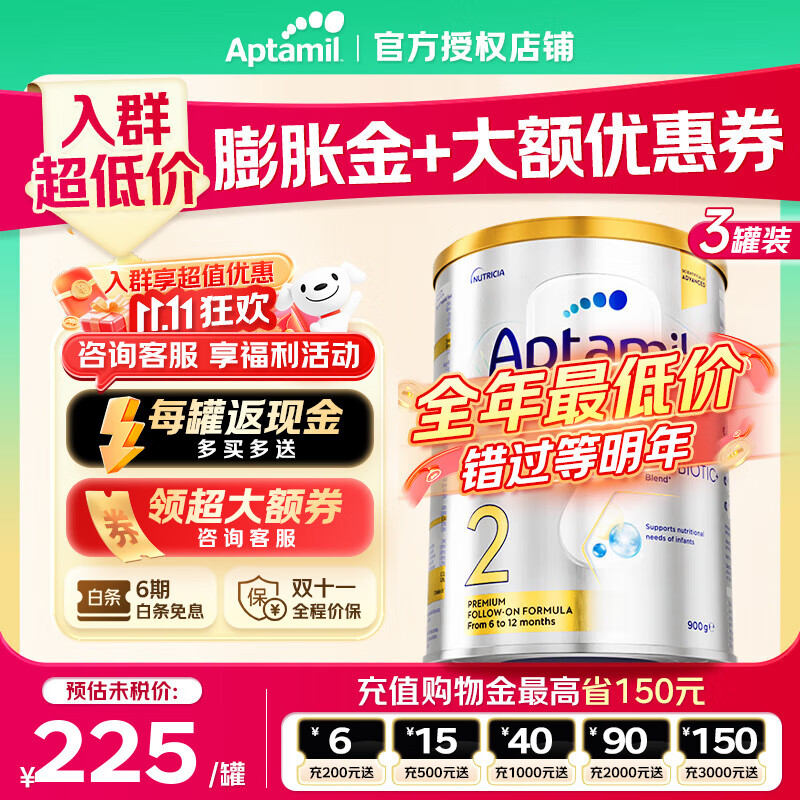 爱他美(Aptamil)澳洲白金版含DHA叶黄素营养新西兰进口婴幼儿配方牛奶粉官方授权 【晒单每罐返】2段3罐 效期至27.7