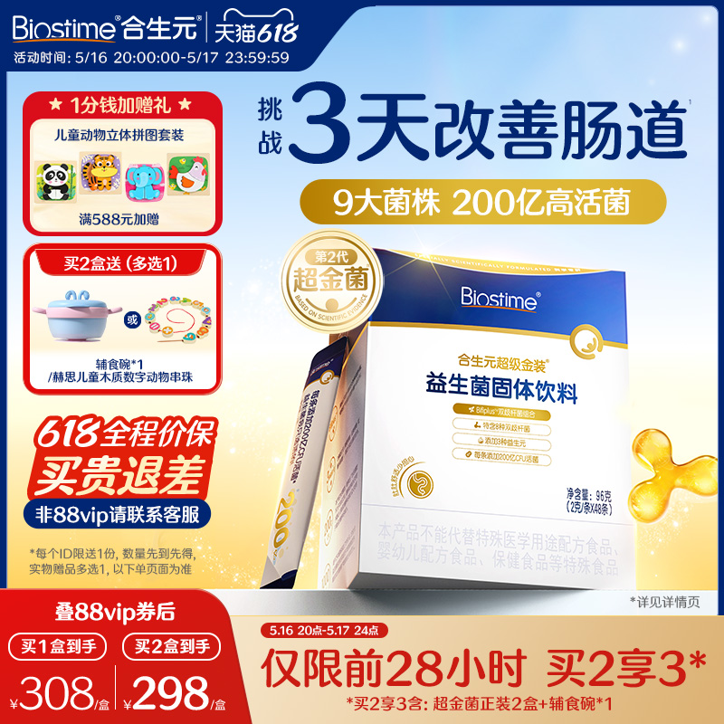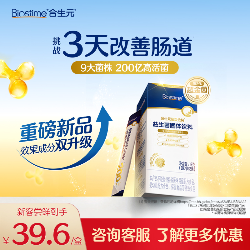 合生元全新升级第二代超金菌48袋含婴儿双歧杆菌呵护肠胃增强营养