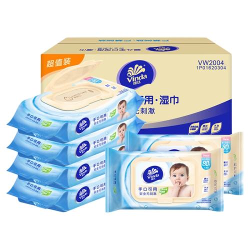 维达(Vinda)湿巾湿纸巾婴儿湿巾纸手口湿巾80抽取儿童宝宝安全专用温和无刺激 80片*12包 【整箱装】