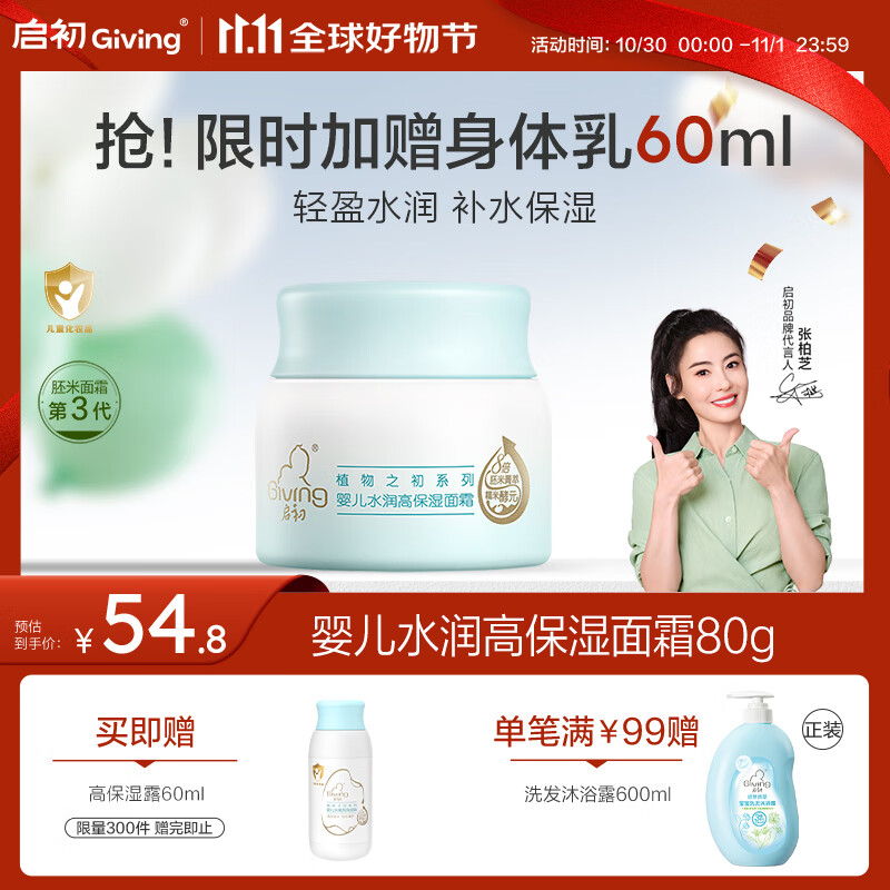 启初胚米3.0水润高保湿面霜80g儿童面霜婴儿宝宝保湿补水温和润肤护肤