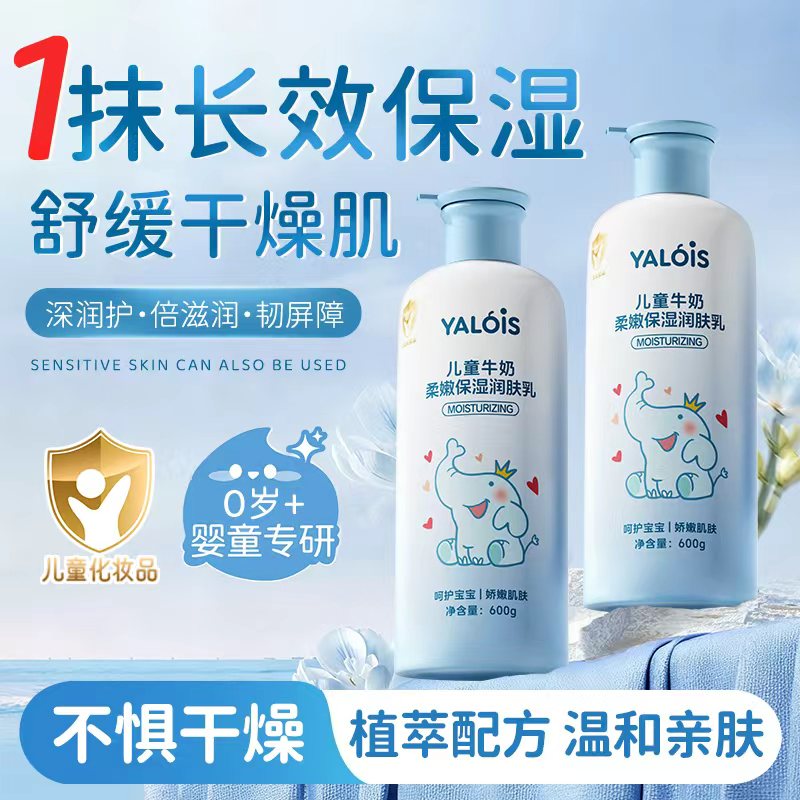 YALOIS儿童牛奶柔嫩保湿润肤乳600g清爽娇嫩护肤宝宝婴幼儿专用