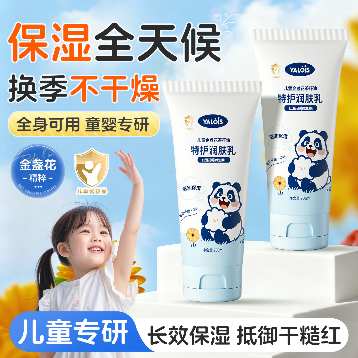 YALOIS儿童金盏花茶籽油特护润肤乳200ml清爽娇嫩护肤宝宝婴幼儿专用