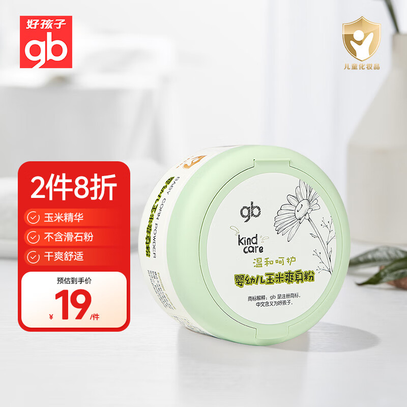 好孩子(gb)婴儿爽身粉玉米爽身粉不含滑石粉带粉扑爽滑护肤 140g