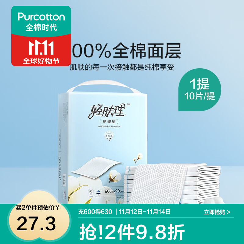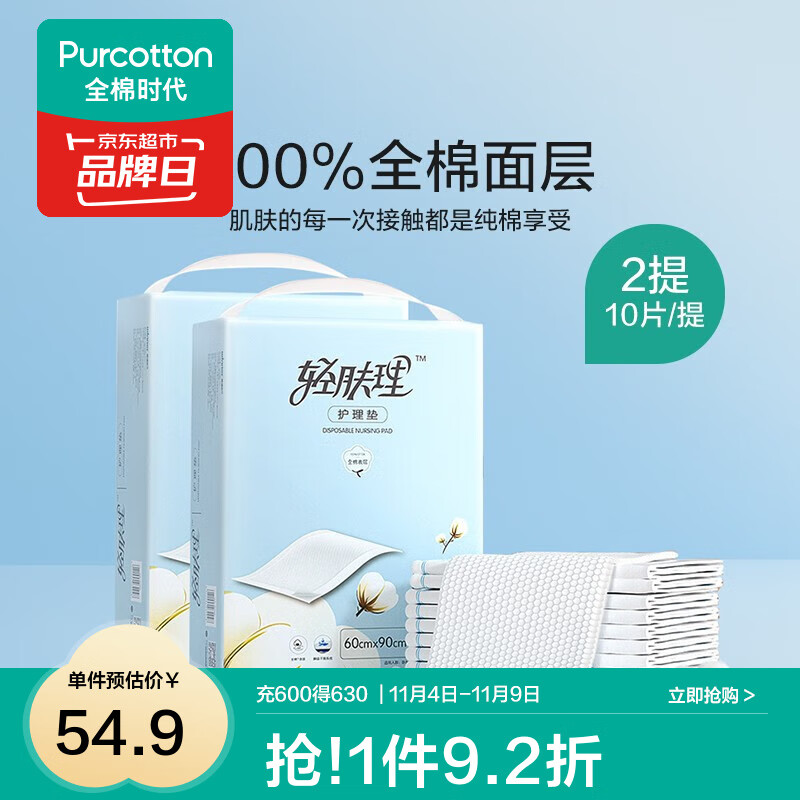 全棉时代轻肤理护理垫隔尿垫失禁护理老人产妇产褥垫大尺寸4包