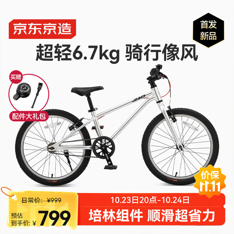 京东京造光羽超轻儿童自行车6-12岁京东自营山地自行车学生男女20寸逐光银