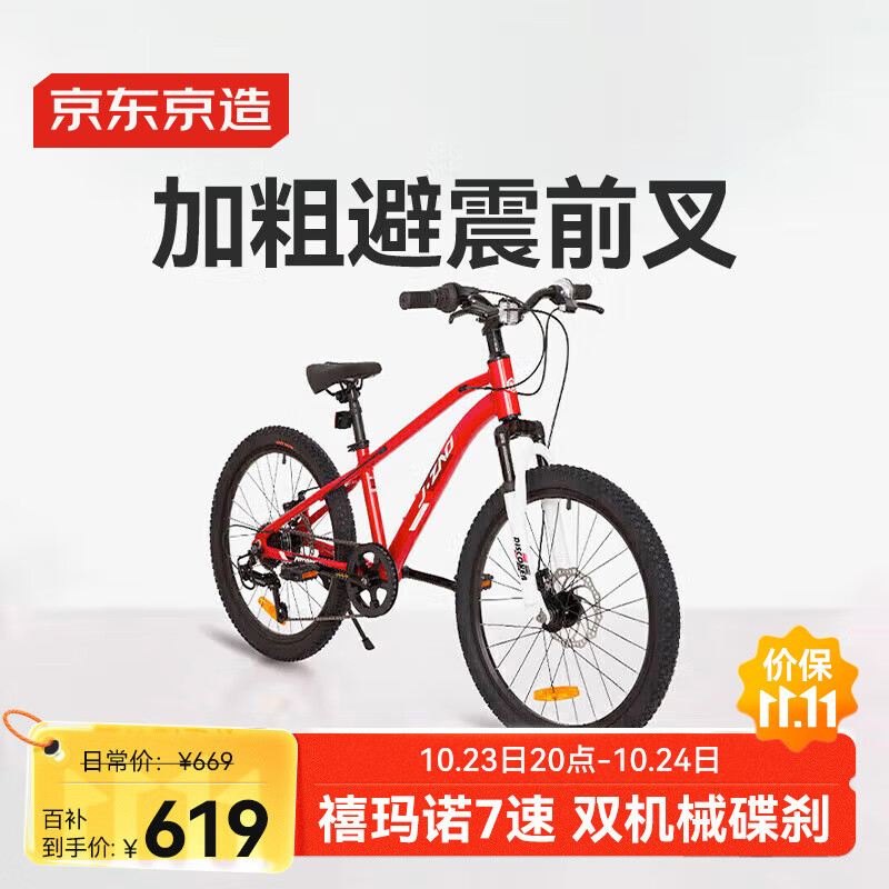 京东京造20寸儿童自行车6-12-13岁山地自行车学生 7速碟刹升级款-红色
