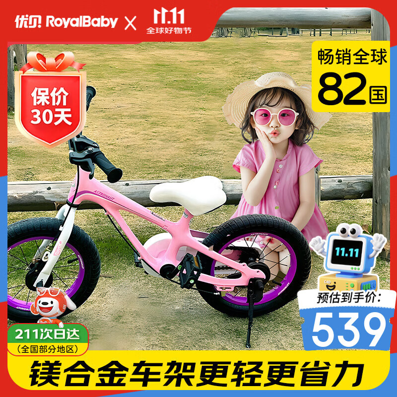 优贝(RoyalBaby)儿童自行车男女镁合金单车 月亮系列3-5岁 宇航员14寸 粉色