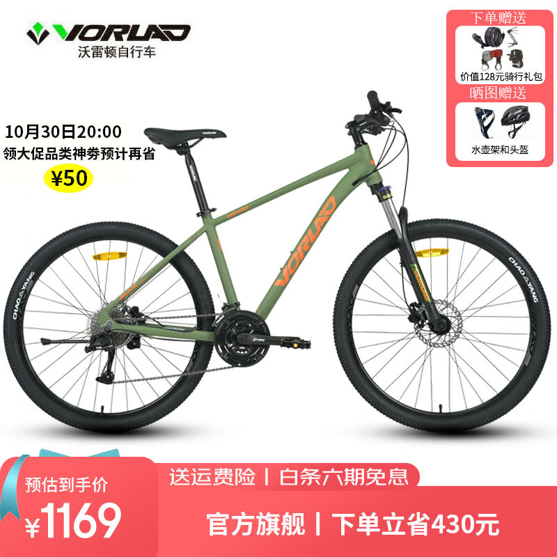沃雷顿(VORLAD)红日500山地自行车油压碟刹24速培林花鼓学生成人通勤代步车 绿橙色26*17(身高165-180cm)