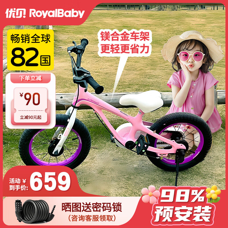 优贝(RoyalBaby)儿童自行车5-9岁男女学生通勤镁合金单车月亮系列 宇航员18寸粉色