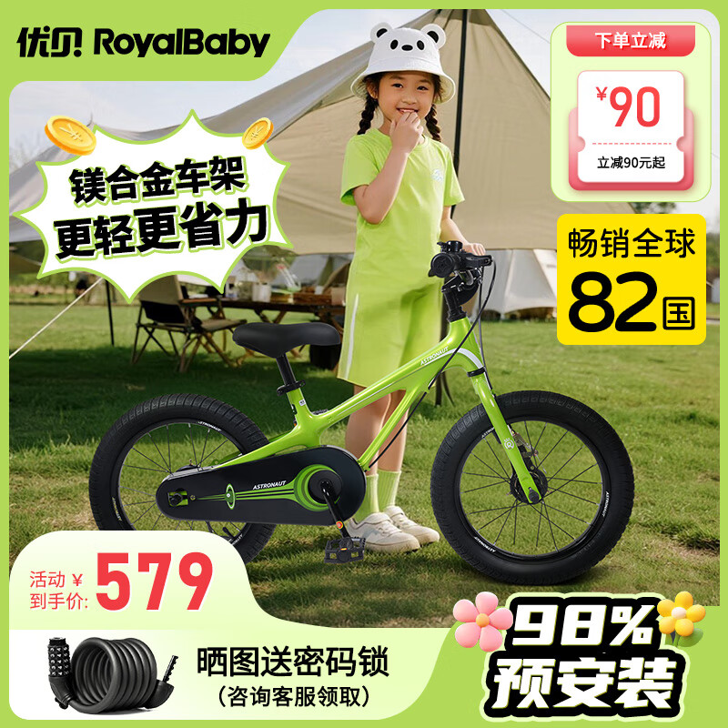 优贝(RoyalBaby)儿童自行车镁合金男女单车 月亮系列3-5岁 宇航员14寸 柠檬绿
