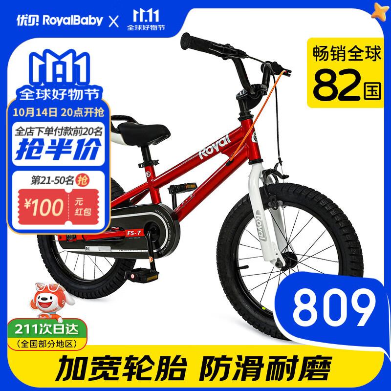 优贝(RoyalBaby)儿童自行车男女镁合金单车 月亮系列4-7岁 宇航员16寸 红色