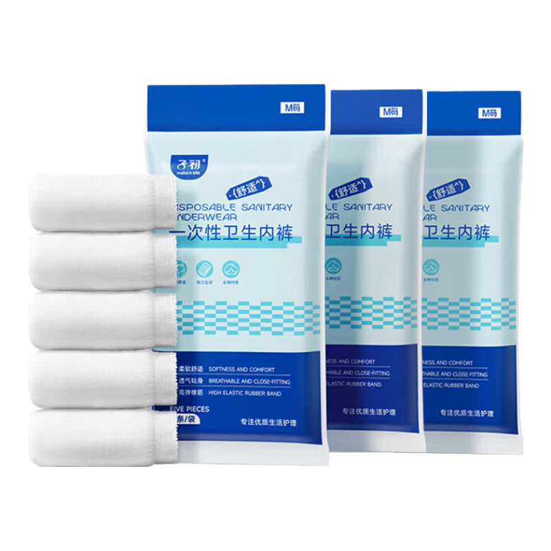 百亿补贴:子初(matern’ella)子初一次性内裤产妇纯棉免洗大码裤孕妇产后做月子用品旅行内裤女 【呵护装】3袋共15条 M码(建议110斤以内)