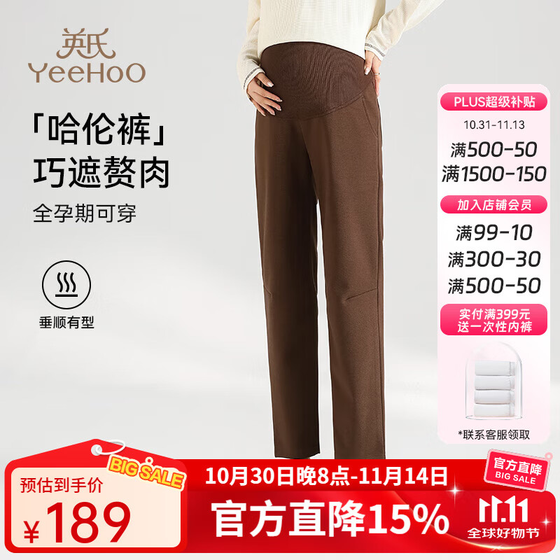 英氏孕妇裤子秋季外穿显瘦孕期孕妇装托腹休闲裤束脚裤 咖色 L