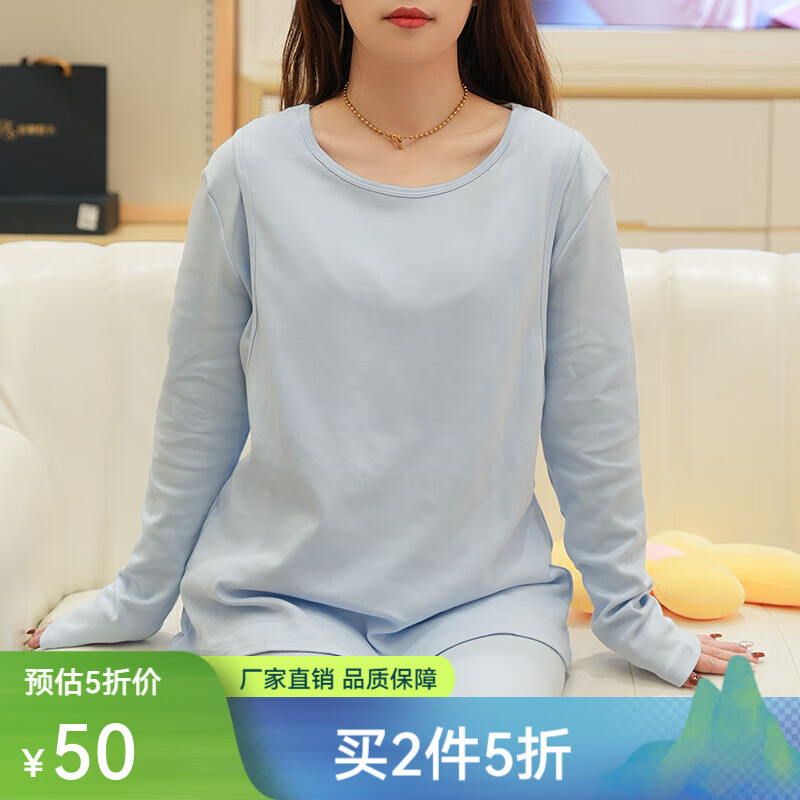 浪漫春天孕妇睡衣月子服产后服哺乳家居服套装喂奶衣舒适孕妇装家居服套装 蓝色 L (建议101-120斤)