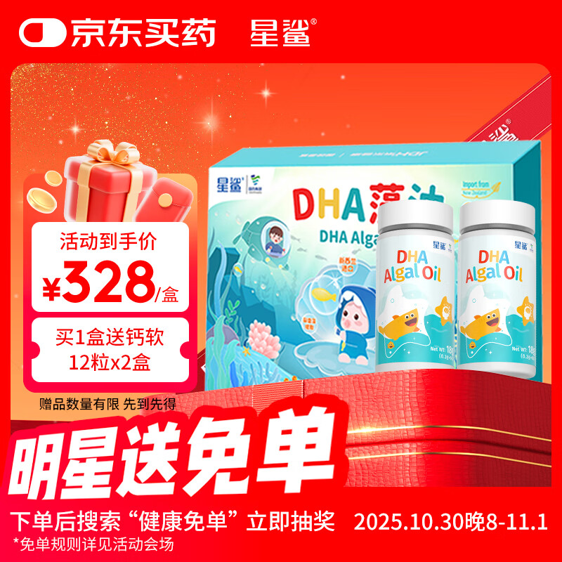星鲨dha婴幼儿海藻油新西兰进口儿童学生孕妇60粒*2瓶dha礼盒装