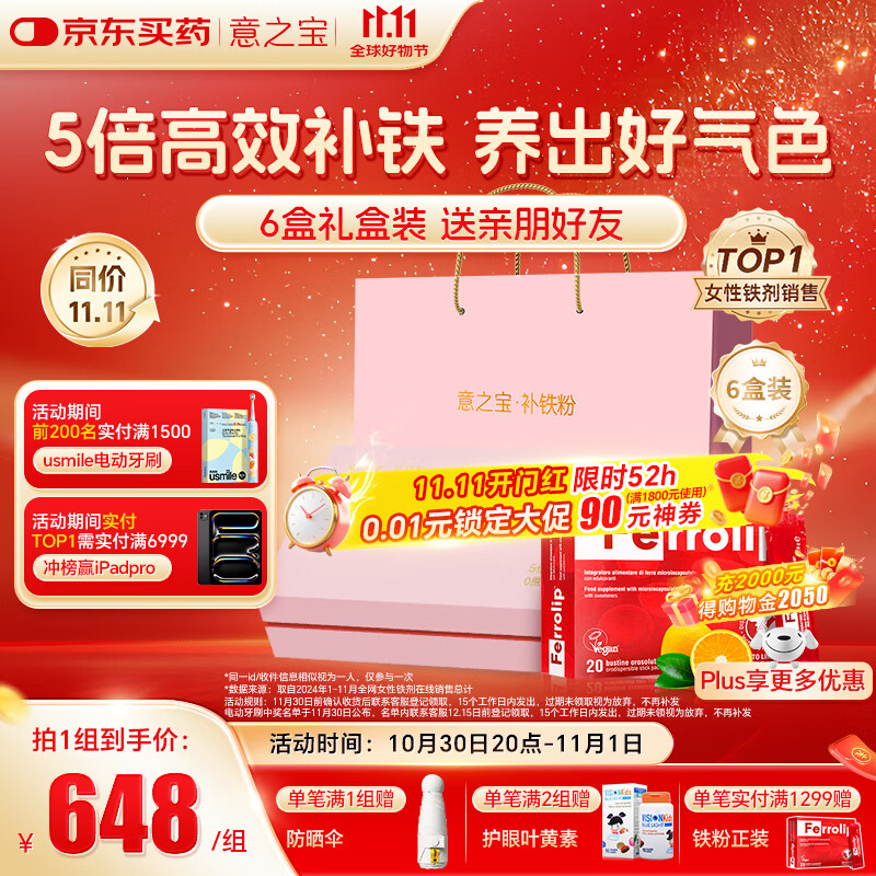 意之宝铁粉补铁剂贫血补血补气血孕妇女性孕期哺乳期【6盒礼盒装】20袋