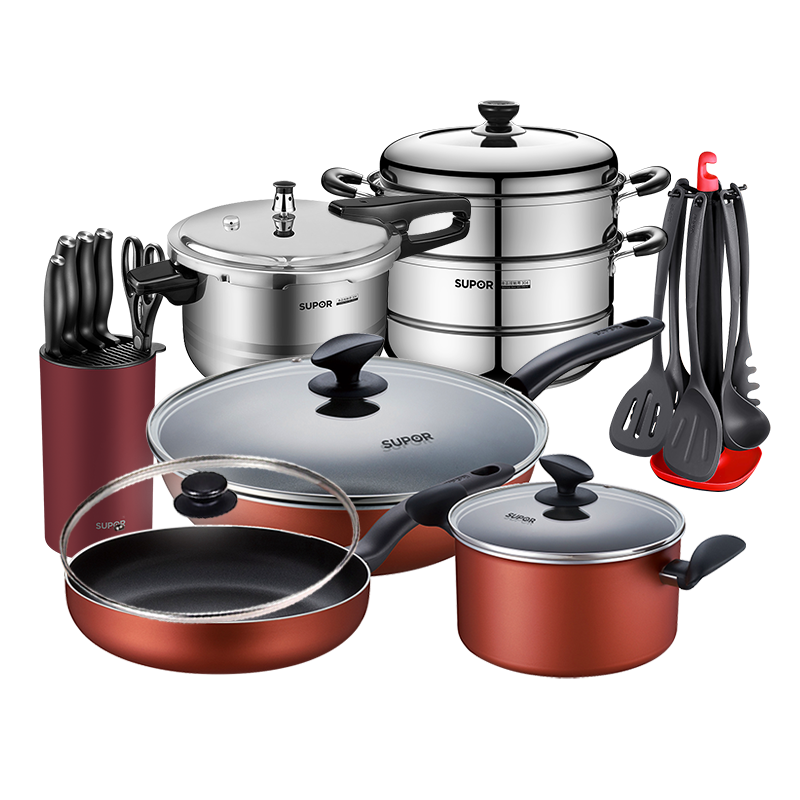苏泊尔(SUPOR) 炒锅锅具套装不粘厨具套装厨房全套炒锅煎锅汤锅电磁炉燃气通用 七件套【炒煎汤蒸刀铲勺压力锅
