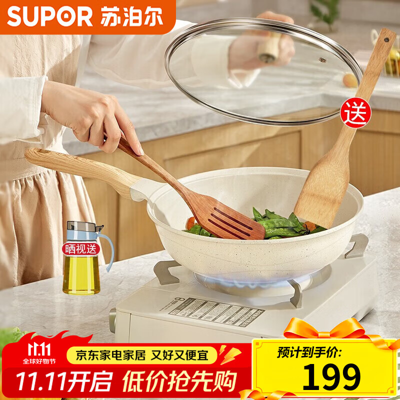 苏泊尔(SUPOR)炒锅不粘锅炒菜锅麦饭石色锅平底煎炒锅少油烟煎锅电磁炉燃气通用 30CM【适用3-5人 】