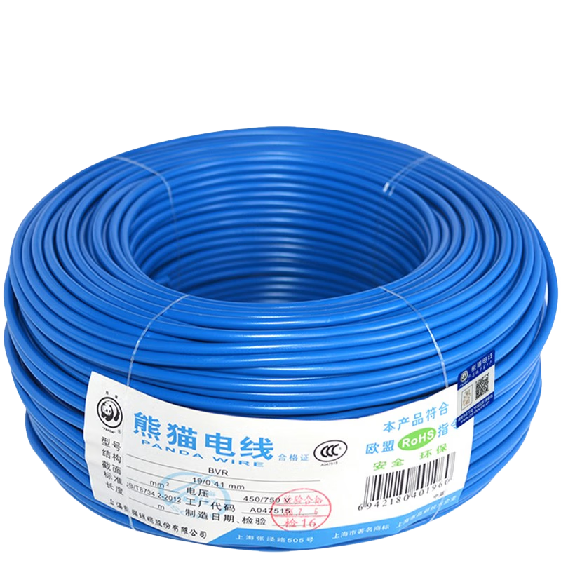 熊猫(PANDA) 熊猫电线 BVR4平方(19/0.52)单股多芯 软线 厨卫用线 空调铜芯 蓝色 100米