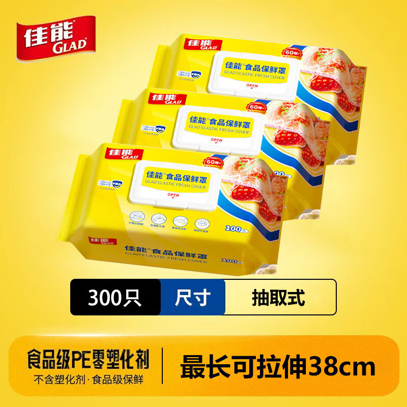 佳能(Glad)保鲜膜套罩PE食品级厨房保鲜冰箱微波炉可用食品防尘罩盘碗罩 100只*3包