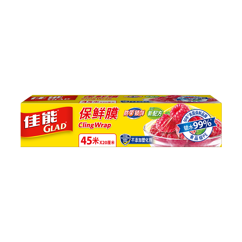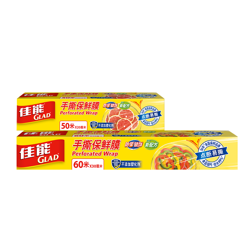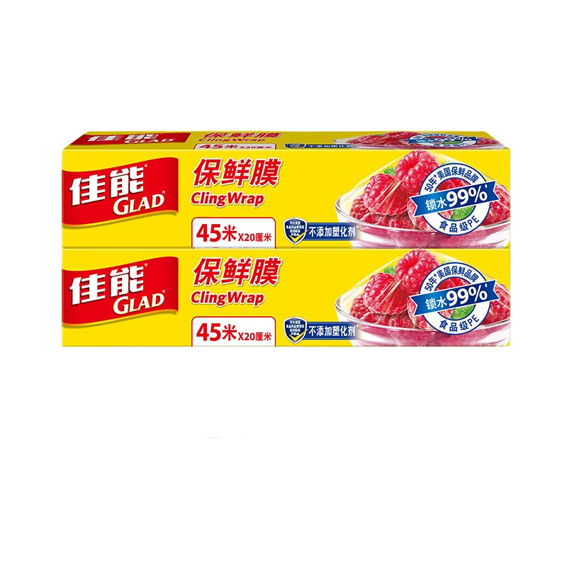 佳能(Glad)保鲜膜PE食品级家用保鲜膜厨房冰箱微波炉专用一次性刀撕保鲜膜套 刀撕保鲜膜中号45米*2盒