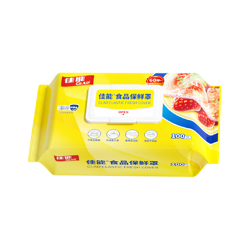 佳能(Glad)食品级保鲜罩100只 一次性保鲜膜套 松紧口大小碗通用耐冷耐热