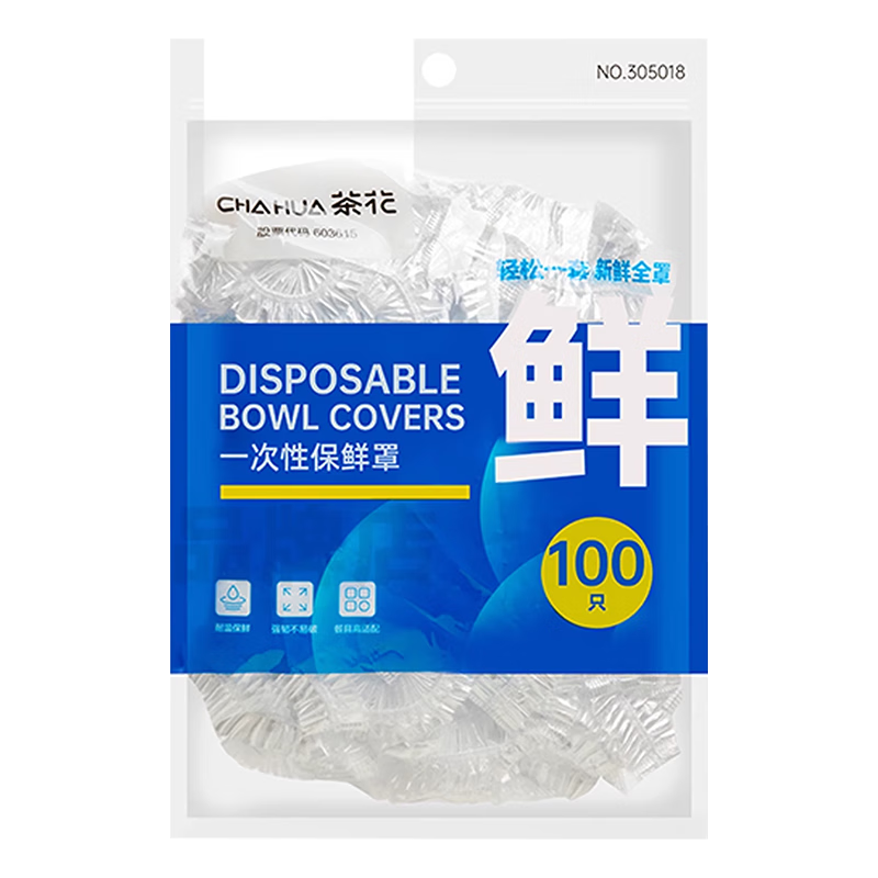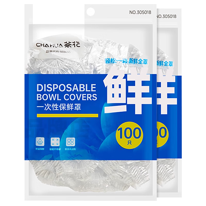 茶花保鲜膜套100只松紧口通用食品级一次性剩菜保鲜防尘浴帽式自封口