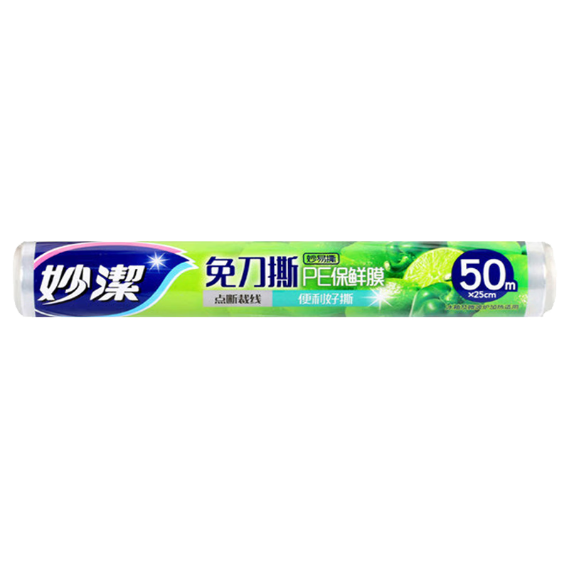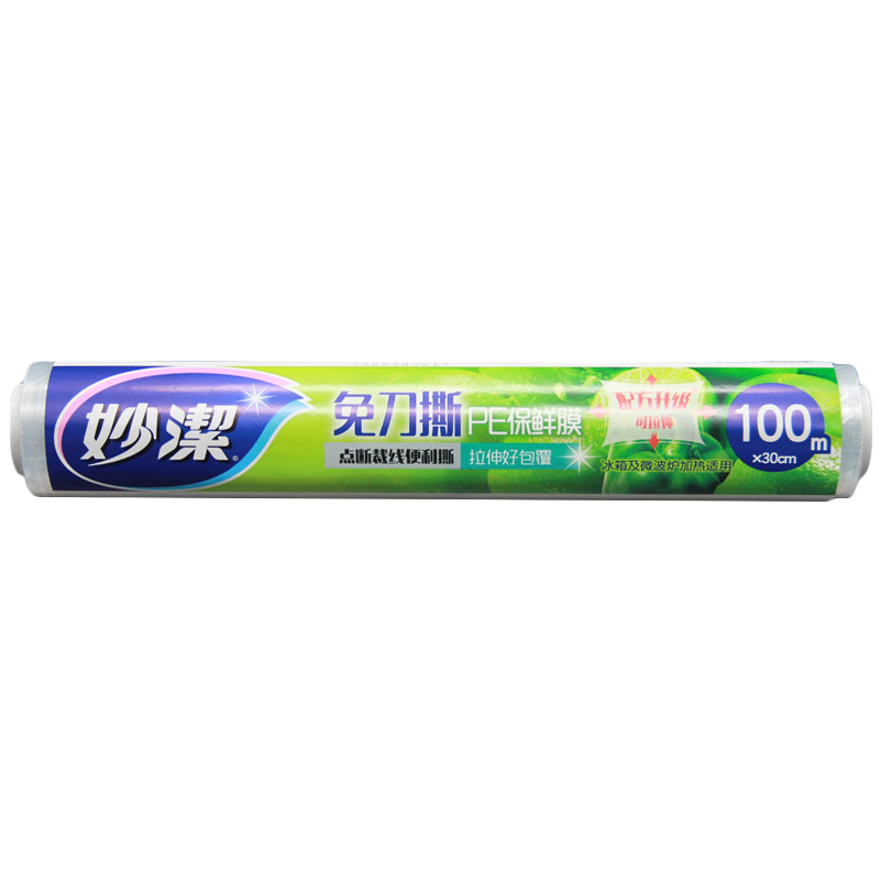妙洁保鲜膜点断式PE食品级家用厨房冰箱微波炉免刀撕一次性食品用 大号30cm*100米共1卷