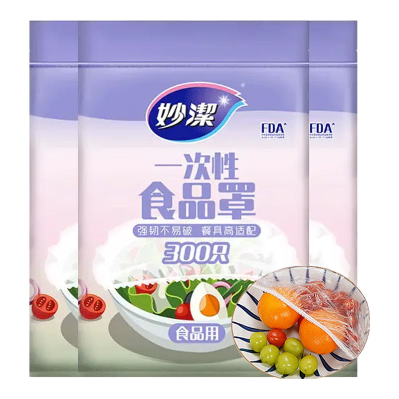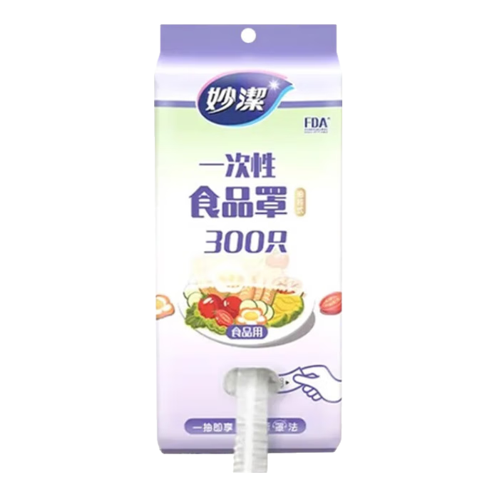 妙洁(MIAOJIE)一次性保鲜膜罩剩菜饭碗盘食品级PE保鲜袋套防尘放飞虫保护罩 抽取式1包共300只