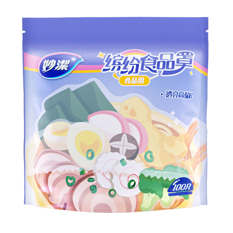 妙洁 缤纷保鲜罩 100只 厚实保鲜膜套食品级原料