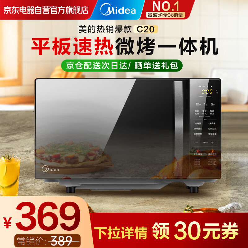 美的(Midea)家用微波炉光波烤箱微烤一体机平板加热多功能智能杀菌饭盒蒸菜单C20
