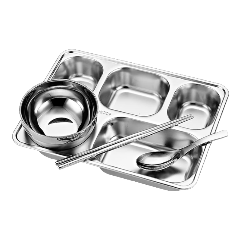 宇太(YUTAI)304不锈钢餐盘饭盒 五格加深食堂分格快餐盘碗勺筷套装 282204TZ