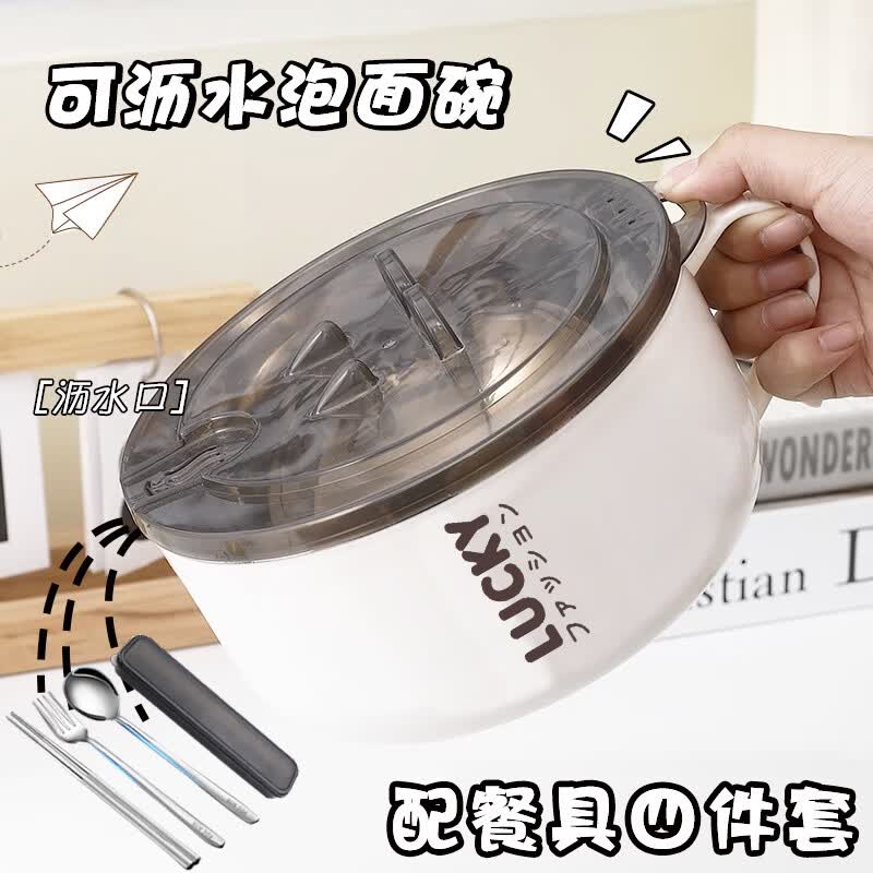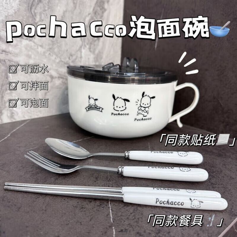 Jidaocook学生泡面碗带盖帕恰狗不锈钢宿舍饭盒可沥水方便面专用大容量饭盒 1000ML碗+盖【餐具套装+贴纸】 可沥水