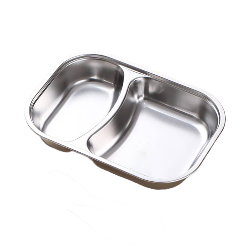 不锈钢儿童餐盘分格餐盘幼儿园家用宝宝不锈钢餐盘防摔多格饭盒 双格餐盘两个