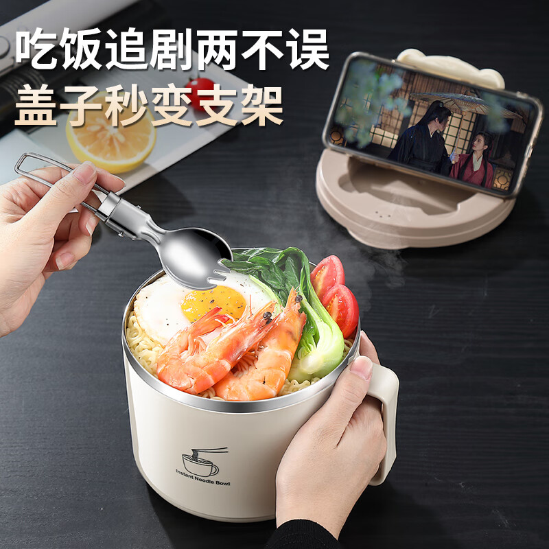 GIOIO304不锈钢泡面碗带盖汤面碗学生饭盒打饭方便面杯餐盒学生便携式 【德国304】赠送勺筷叉+收纳盒 可沥水+带支架盖【加大1900毫升