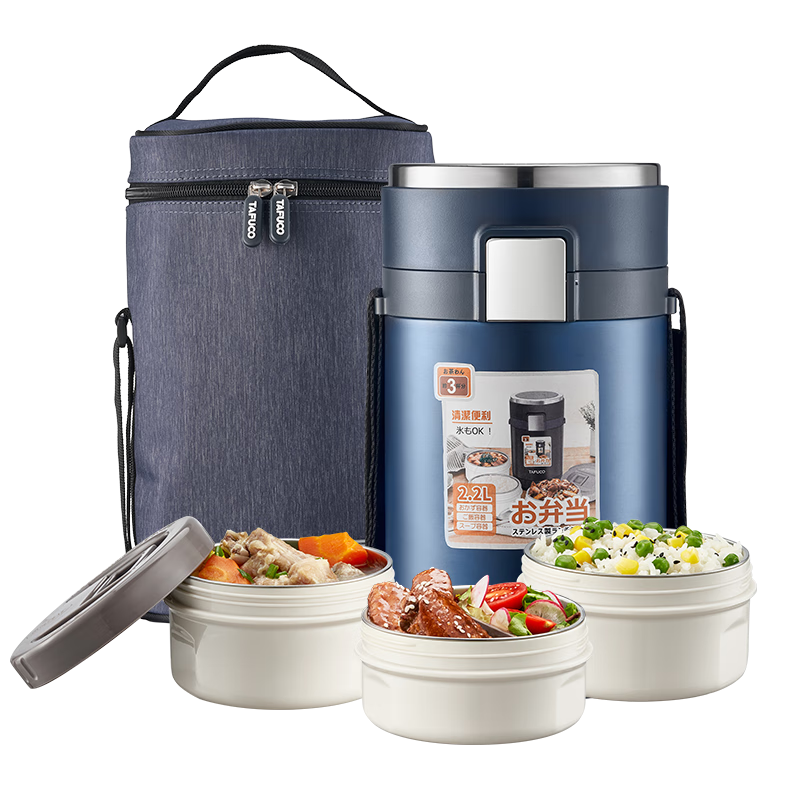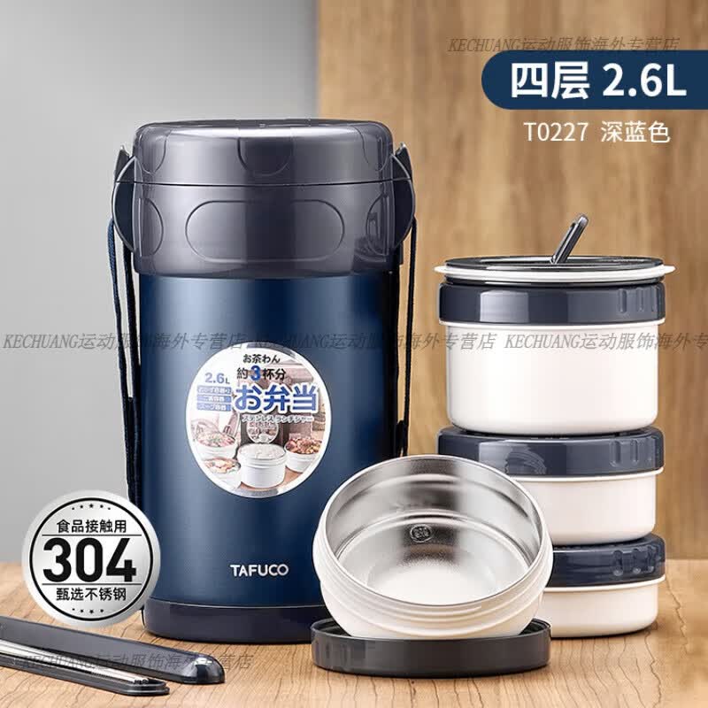 泰福高(TAFUCO)日本304不锈钢超长保温饭盒饭桶12/24小时上班族多层大容量 【防烫新款】深蓝色 四层 2.6L 【鎹原装保温包+餐具】
