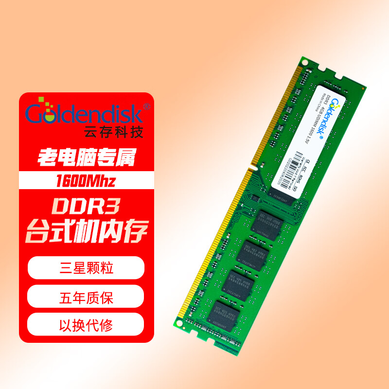 Goldendisk台式机DDR3内存条 8G 1600三星颗粒适用于华硕宏碁戴尔联想兼容1333内存条4G DDR3 台式机 4GB 1条