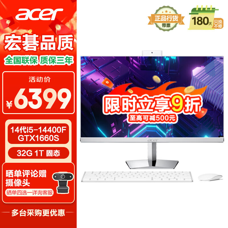 宏碁(acer)27英寸高性能一体机台式电脑游戏设计内置摄像头(酷睿14代i5-14400F 32G 1TB 独显GTX1660S)