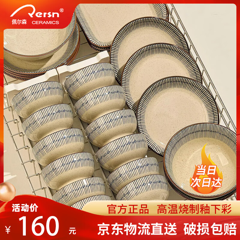 百亿补贴:佩尔森釉下彩陶瓷餐具套装家用2025新款碗碟盘子碗具日式乔迁新居碗盘筷 【礼盒装/京东物流】6人食33件套