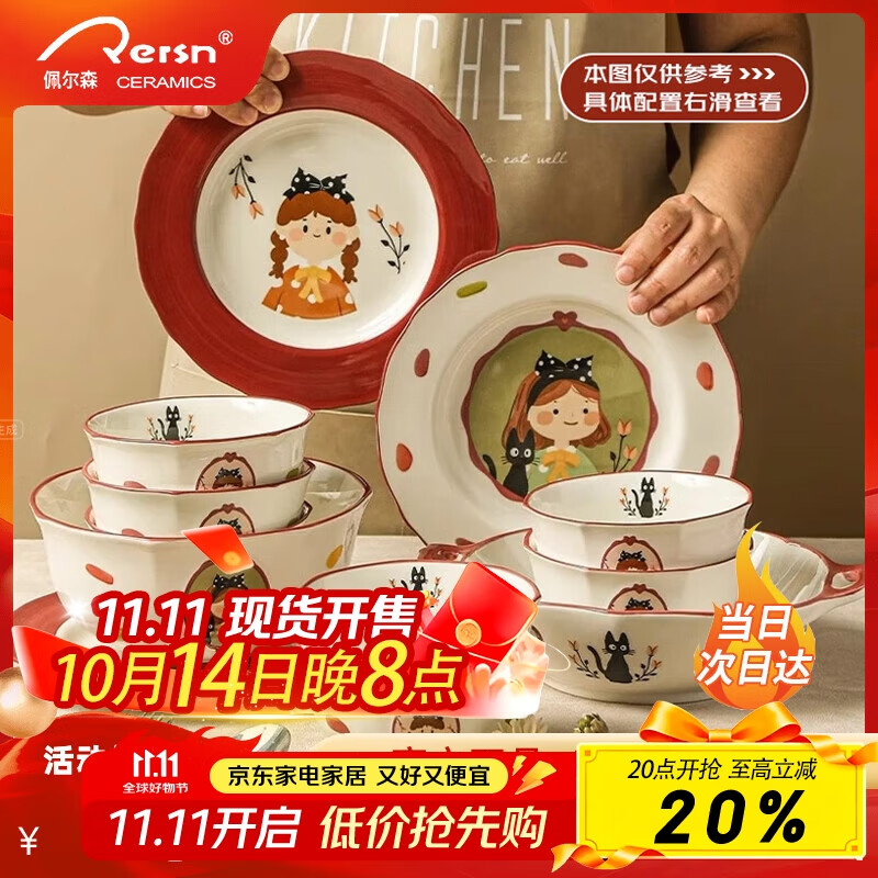 百亿补贴:佩尔森复古女孩碗碟套装可爱陶瓷碗盘餐具送闺蜜生日礼物伴手礼乔迁新居 复古女孩2人食9件套-礼盒装