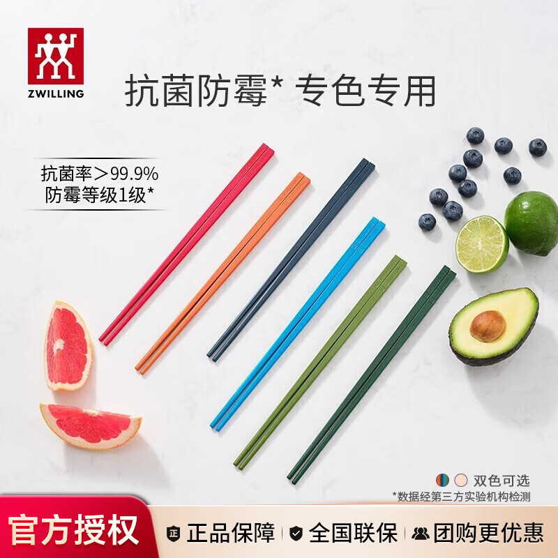 双立人(ZWILLING) 筷子餐具套装家用筷子套装专筷专用家庭分类筷子6双装厨房好物 【抗菌】六色筷子6双-251mm