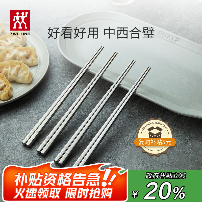 双立人(ZWILLING)不锈钢筷子家用一人一双Minimale高档餐具套装现代银 4双