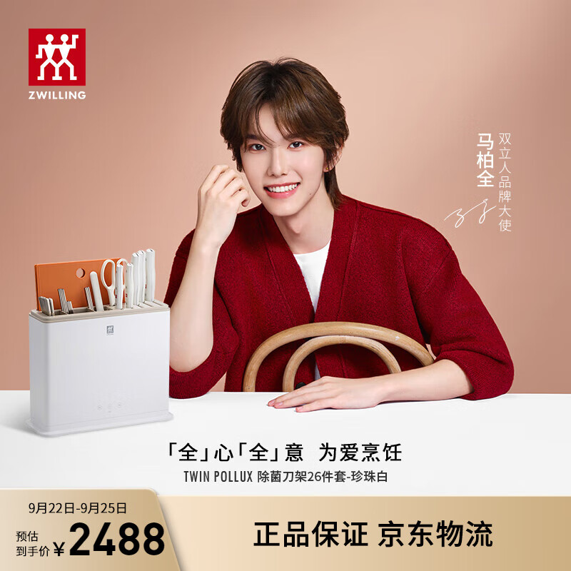 双立人(ZWILLING)【马柏全同款】刀具套装中片刀多用刀菜刀砧板餐具珍珠白双重除菌刀架26件套AB款随机发